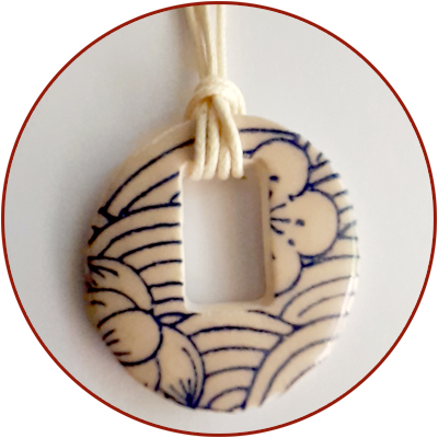 Tots els collars i penjolls de ceràmica estan fets artesanalment, depenent del resultat que busco, faig servir una tècnica o altra, les coccions a 980C-1250C, depenent també de les matèries utilitzades, les decoracions estan fetes amb engalbes, esmalts i vidres. Estan muntats en cordonets de cuir o metall i totes les peces són úniques. Un bon complement pel teu vestuari.