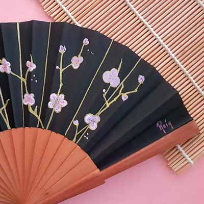 Tots els ventalls són de fusta i roba i estan pintats a mà amb tintes i aquarel·les, per tant no s’han de mullar, ja que es podrien deteriorar. Cada un d’ells són únics i personals.