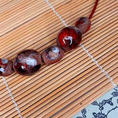 Tots els collars i penjolls de ceràmica estan fets artesanalment. Estan muntats en cordonets de cuir o metall i totes les peces són úniques. Les decoracions estan fetes amb engalbes, esmalts i vidres. Un bon complement pel teu vestuari.