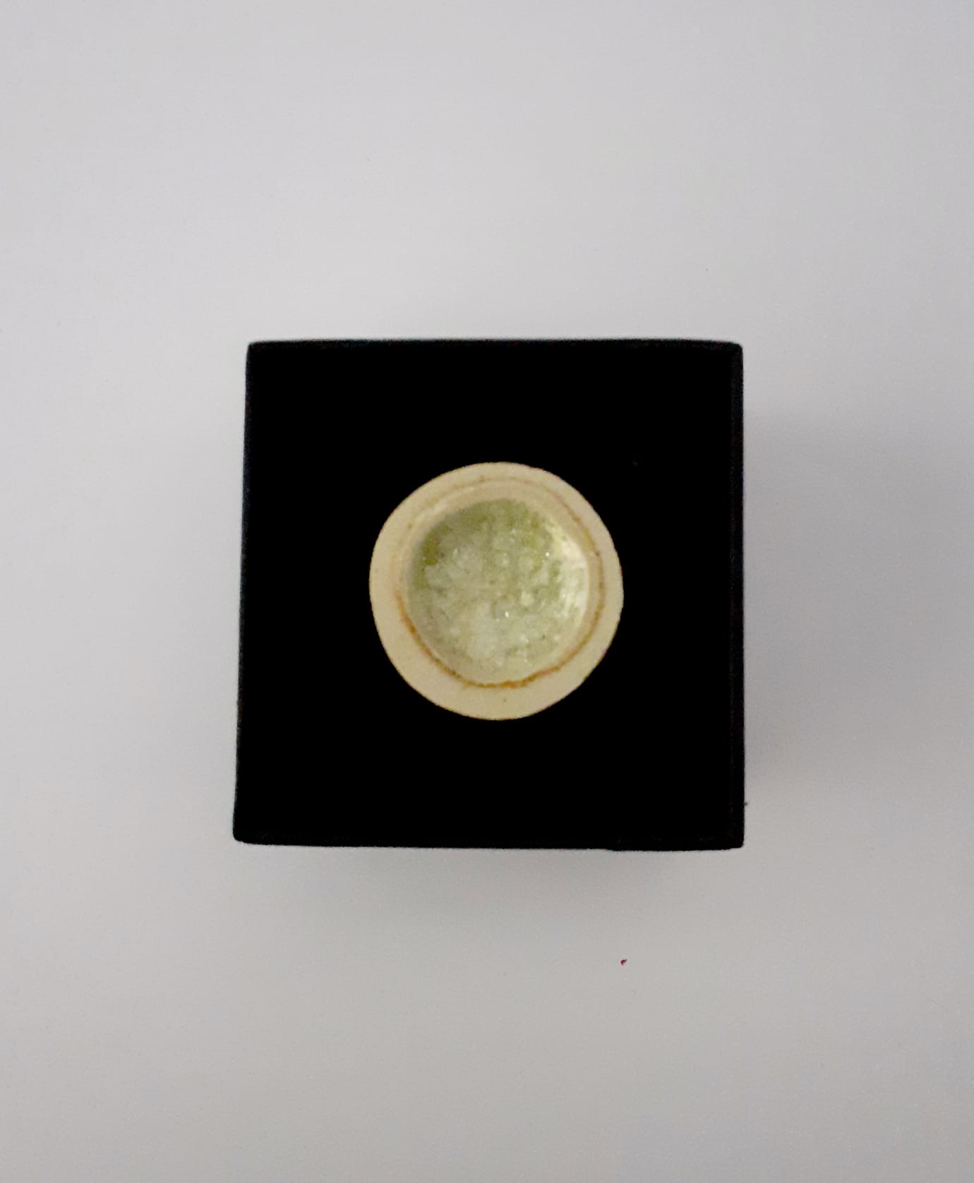 Realizo todos los anillos de cerámica artesanalmente, dependiendo del resultado que busco, uso una técnica u otra, las cocciones a 980C-1250C, dependiendo también de las materias utilizadas, las decoraciones están hechas con engobes, esmaltes y cristales. Las bases son ajustables y de plata. Son piezas delicadas, por lo que las disfruta mucho tiempo, cuida de ellas.