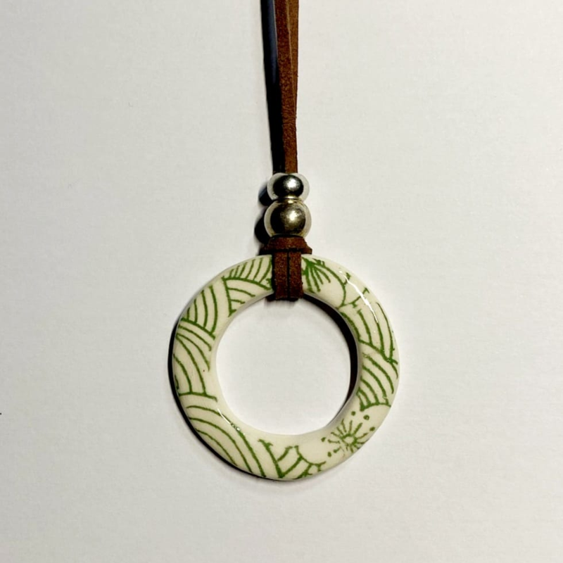 Todos los collares y colgantes de cerámica están hechos artesanalmente, dependiendo del resultado que busco, uso una técnica u otra, las cocciones a 980C -1250C, dependiendo también de las materias utilizadas, las decoraciones están hechas con engobes, esmaltes y cristales. Están montados en cordoncitos de cuero o metal y todas las piezas son únicas. Un buen complemento para tu vestuario.