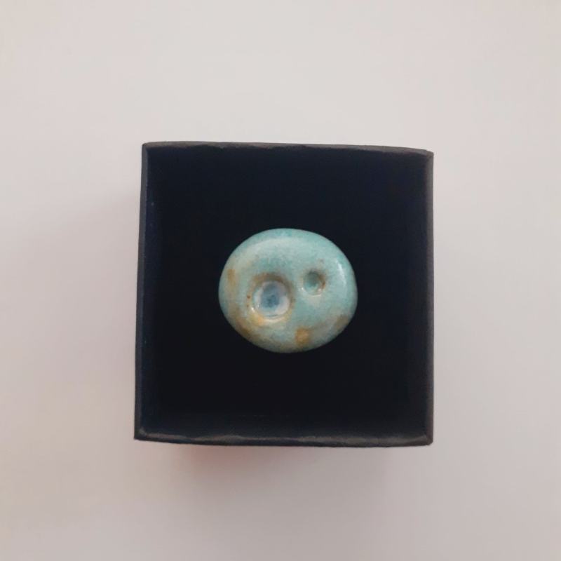 Realitzo tots els anells de ceràmica artesanalment, depenent del resultat que busco, faig servir una tècnica o altra, les coccions a 980C-1250C, depenent també de les matèries utilitzades, les decoracions estan fetes amb engalbes, esmalts i vidres. Les bases són ajustables i de plata. Són peces delicades, per tant que les gaudiu molt de temps, tingueu cura d’elles.