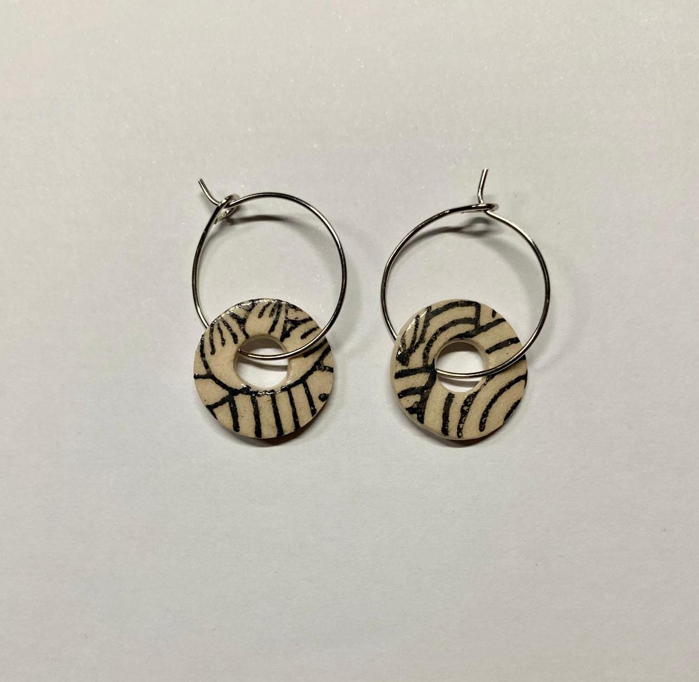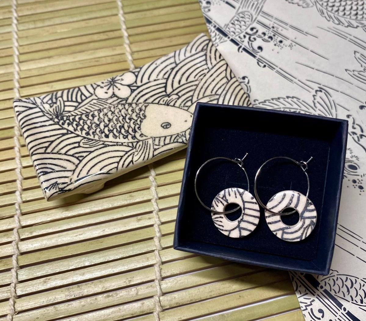 Realitzo totes les arracades de ceràmica artesanalment, depenent del resultat que busco, faig servir una tècnica o altra, les coccions a 980C-1250C, depenent també de les matèries utilitzades, les decoracions estan fetes amb engalbes, esmalts i vidres. Les tanques són de plata, per tant de no produir cap al·lèrgia. Són peces delicades, per tant que les gaudiu molt de temps, tingueu cura d’elles.