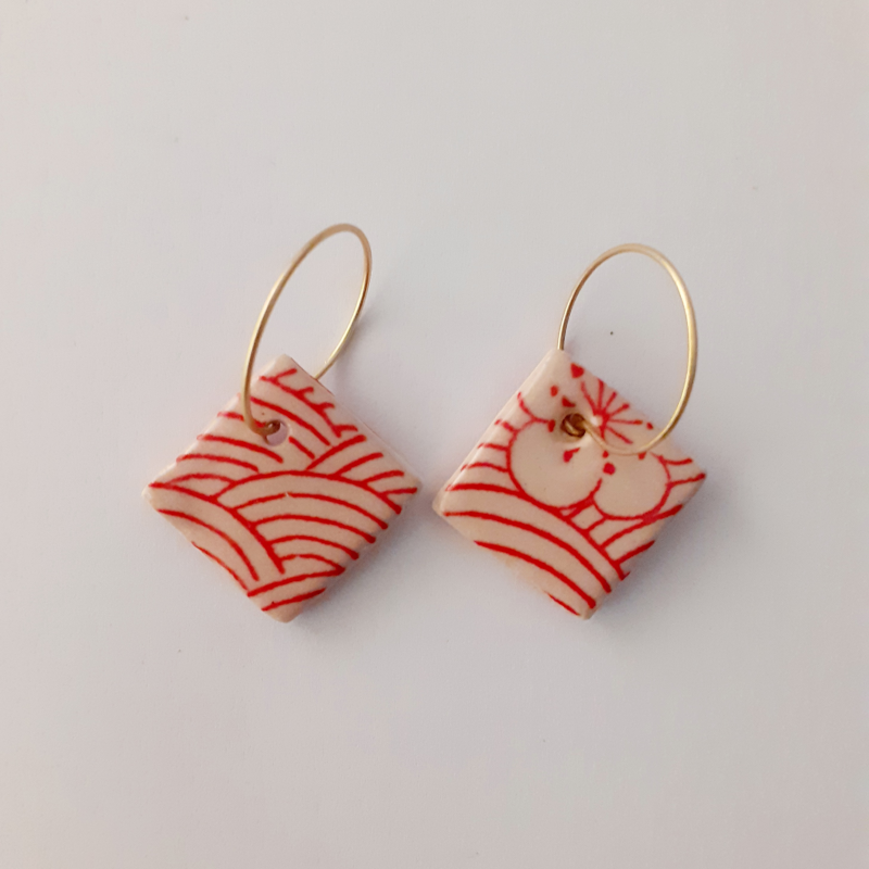 Realitzo totes les arracades de ceràmica artesanalment, depenent del resultat que busco, faig servir una tècnica o altra, les coccions a 980C-1250C, depenent també de les matèries utilitzades, les decoracions estan fetes amb engalbes, esmalts i vidres. Les tanques són de plata, per tant de no produir cap al·lèrgia. Són peces delicades, per tant que les gaudiu molt de temps, tingueu cura d’elles.