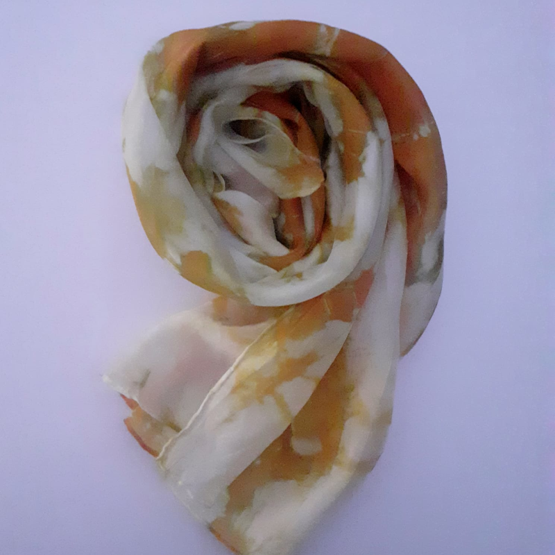 Fulard de seda pintat a mà de 150×45 amb la tècnica japonesa de Shibori.