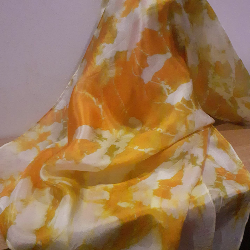 Els mocadors i fulards de seda, són tots pintats a mà amb tintes tèxtils i diverses tècniques, això fa que tots siguin diferents i personals.
