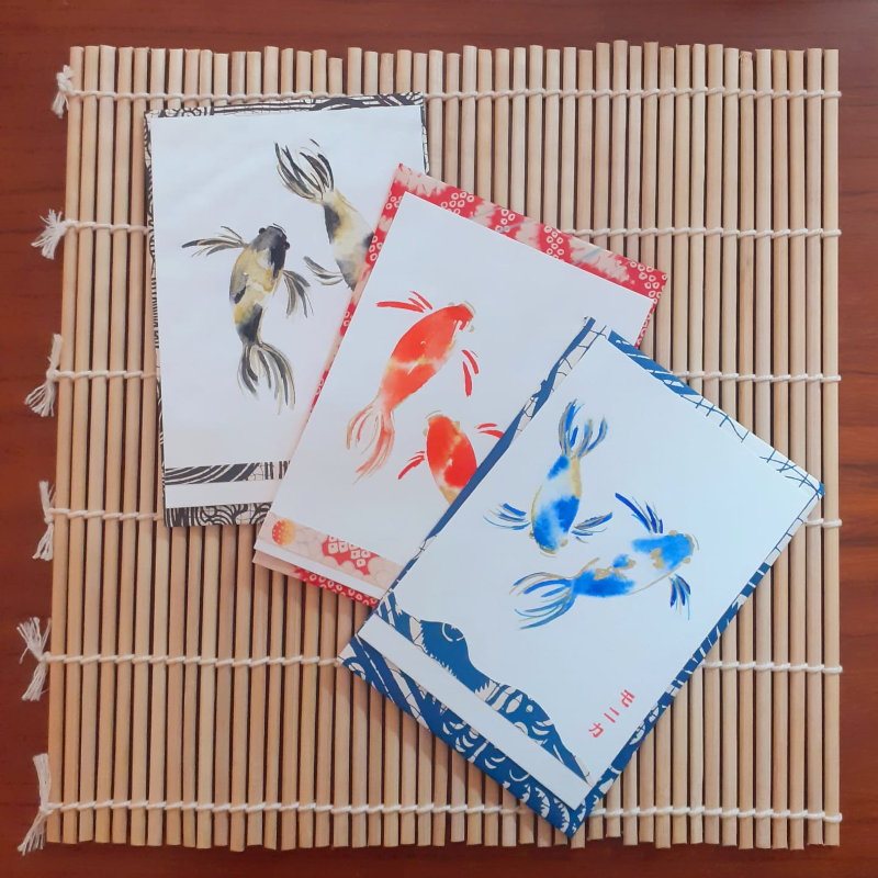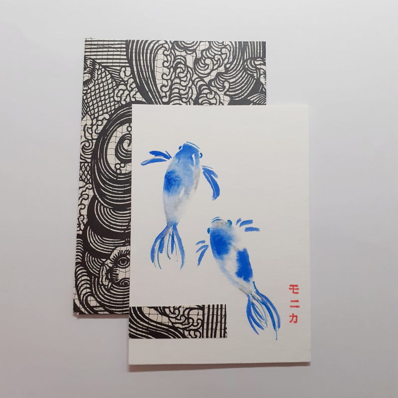 Postal pintada a mà amb  aquarel·la, gouache. i collage. Va presentat amb sobre a joc fet a mà.