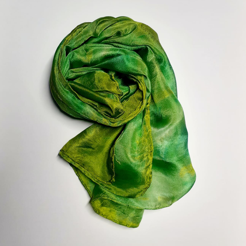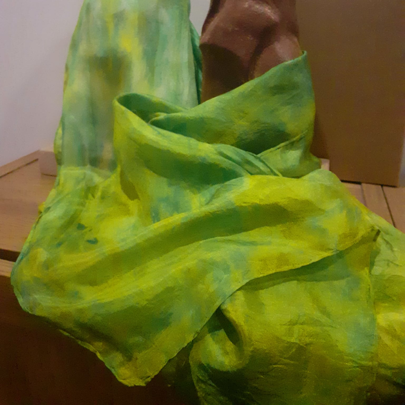 Els mocadors i fulards de seda, són tots pintats a mà amb tintes tèxtils i diverses tècniques, això fa que tots siguin diferents i personals.