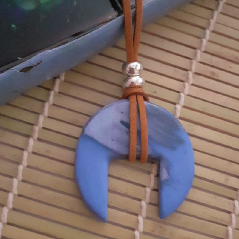 Tots els collars i penjolls de ceràmica estan fets artesanalment, depenent del resultat que busco, faig servir una tècnica o altra, les coccions a 980C-1250C, depenent també de les matèries utilitzades, les decoracions estan fetes amb engalbes, esmalts i vidres. Estan muntats en cordonets de cuir o metall i totes les peces són úniques. Un bon complement pel teu vestuari.