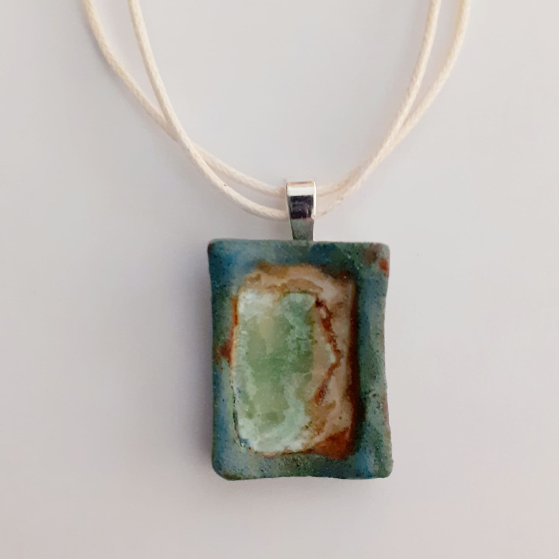Tots els collars i penjolls de ceràmica estan fets artesanalment, depenent del resultat que busco, faig servir una tècnica o altra, les coccions a 980C-1250C, depenent també de les matèries utilitzades, les decoracions estan fetes amb engalbes, esmalts i vidres. Estan muntats en cordonets de cuir o metall i totes les peces són úniques. Un bon complement pel teu vestuari.
