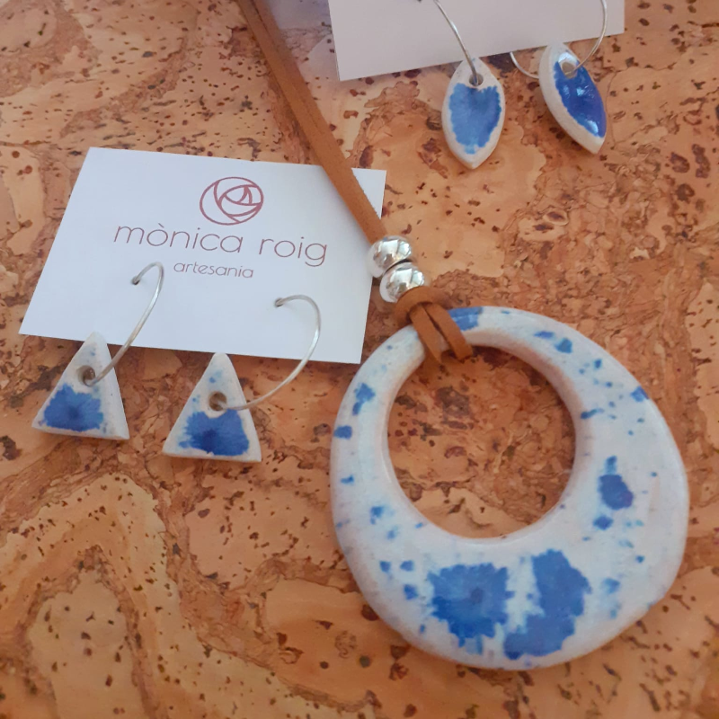 Tots els collars i penjolls de ceràmica estan fets artesanalment, depenent del resultat que busco, faig servir una tècnica o altra, les coccions a 980C-1250C, depenent també de les matèries utilitzades, les decoracions estan fetes amb engalbes, esmalts i vidres. Estan muntats en cordonets de cuir o metall i totes les peces són úniques. Un bon complement pel teu vestuari.
