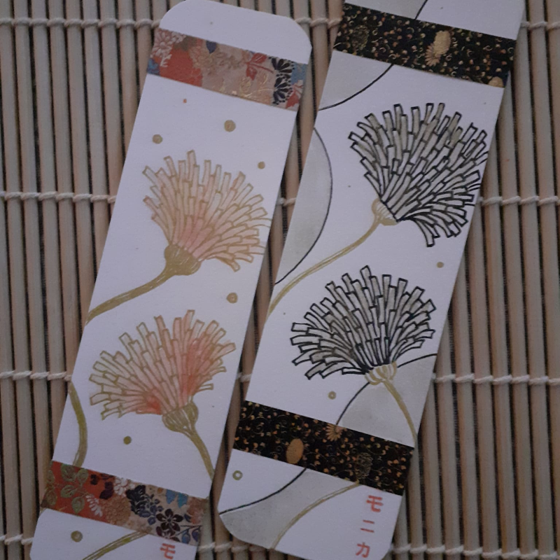 Tots els punts de llibre estan pintats a mà amb aquarel·la,tinta i gouache sovint combinats amb papers especials per cada motiu. També es poden fer sobre comanda per casaments, aniversaris, clubs de lectura. Tots els punts de llibre van amb la seva funda de paper.